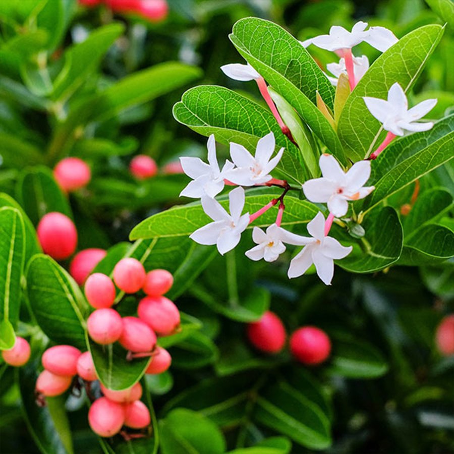 Değişik şekilli dalları vardır. Yaprakları parlak koyu yeşildir. Beyaz ve pembe çiçek açar. Büyümesi hızlıdır. Yıldız şeklindeki çiçeklerinin kokusu yasemini andırır.