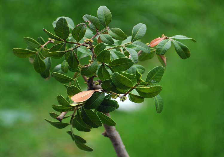 Bitkinin dal ve gövdesinin yaralı yerlerinden akan reçinenin pıhtılaşmasıyla “mastik” adı verilen sakız elde edilir. Toplanan bu usare 2-4 haftada katılaşır. İlk başlarda donuk yeşil renkte olan reçine, daha sonraları soluk sarı renkli, kolaylıkla kırılabilen parça ve damlalar haline gelir. Özel bir kokusu ve tadı vardır. Eter ve etanolde çözünür. Sakız içinde uçucu yağ, mastisik asit, mastisin ve acı maddeler bulunmaktadır. Eskiden balgam söktürücü olarak kullanılmıştır. Diş etlerini kuvvetlendirmek ve ağız kokusunu gidermek için kullanılır. Sanayide yapıştırıcı, cila olarak ve parfümeride kullanılır. Tatlılara, özellikle muhallebi, sütlaç gibi sütlü tatlılara katılır. Sakız, yiyeceklere güzel bir tat ve koku verir. Güveç ekmek hamuruna çeşni katmak için de kullanılır. Ayrıca Bulgaristan’da mastika adıyla bilinen rakı sakızdan yapılmaktadır.